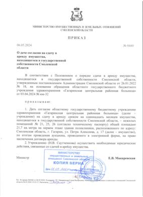 Аренда: Коммерческое помещение площадью 21,7 кв.м. по адресу Смоленская область, Гагаринский район, г. Гагарин, ул. Петра Алексеева, д. 17. Назначение: нежилое. Расположено на 1 этаже здания поликлиники. Целевое назначение объекта: для использования под аптечный пункт. Срок действия договора аренды: 11 (одиннадцать) месяцев.