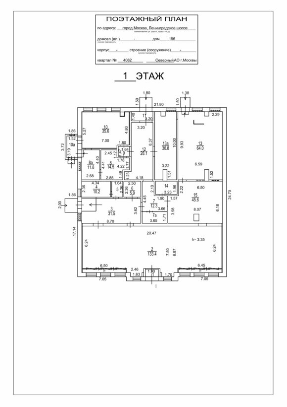 Коммерческое помещение площадью 458,2 м², расположено по адресу: г. Москва, Ленинградское шоссе, 196, район Молжаниновский. Объект занимает 1 этаж в здании с этажностью 1 этаж. Здание требует капитального ремонта, торгового назначения. Здание расположено на земельном участке площадью 766 м².