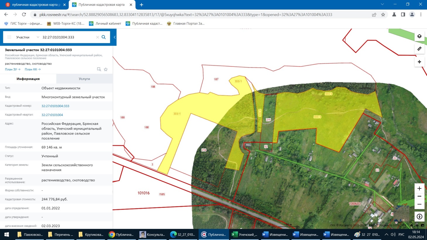 Проведение в электронной форме открытого по составу участников аукциона по продаже земельного участка с кадастровым номером 32:27:0101004:333, площадью 69 146 кв.м., с разрешенным использованием: растениеводство, скотоводство, местоположение: Российская Федерация, Брянская область, Унечский муниципальный район, Павловское сельское поселение.