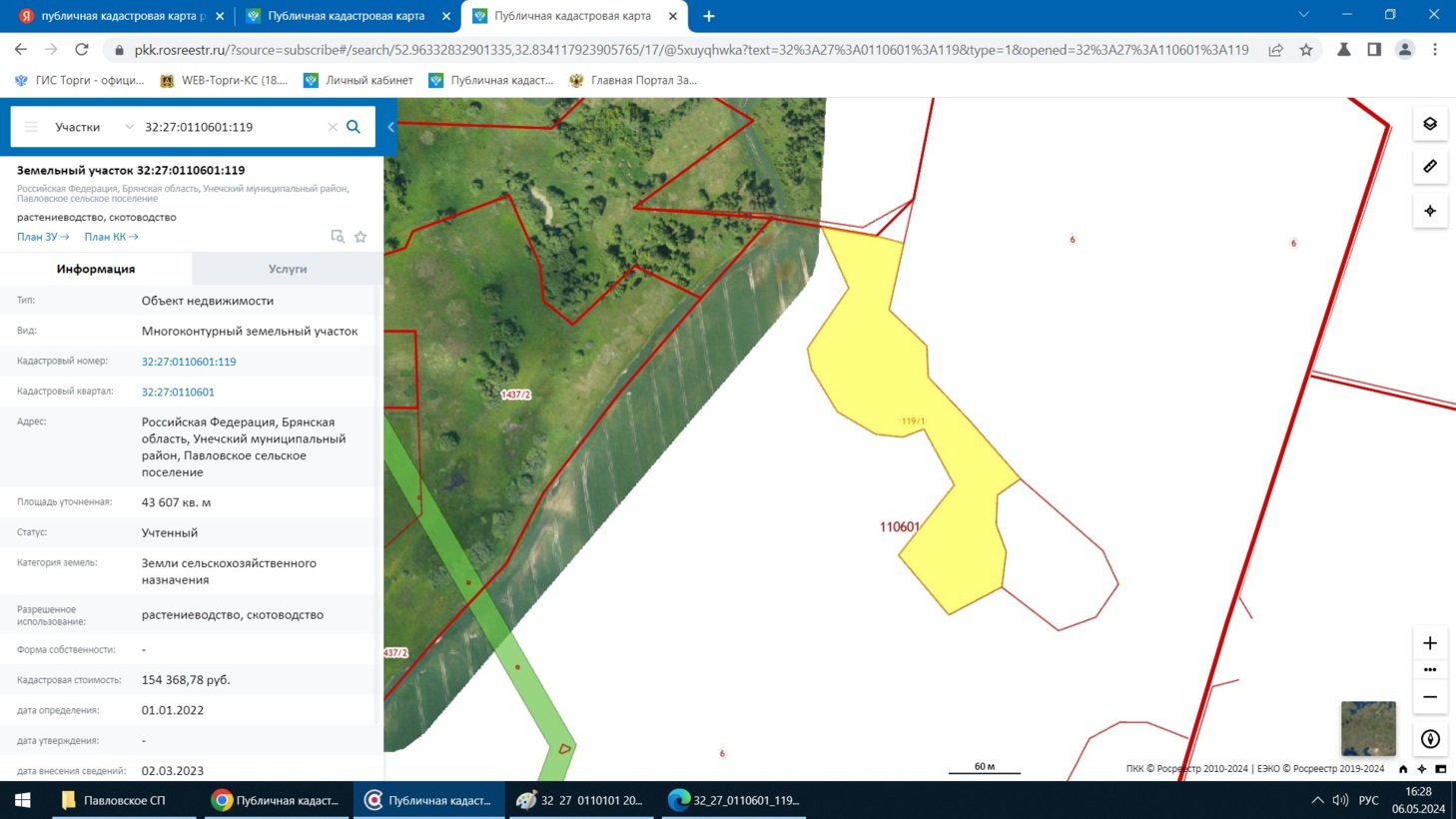 Проведение в электронной форме открытого по составу участников аукциона по продаже земельного участка с кадастровым номером 32:27:0110601:119, площадью 43 607 кв.м., с разрешенным использованием: растениеводство, скотоводство, местоположение: Российская Федерация, Брянская область, Унечский муниципальный район, Павловское сельское поселение.