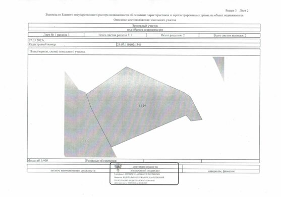 электронный аукцион по продаже земельного участка из земель населенных пунктов с кадастровым номером 25:27:030201:2529, площадью 1800 кв. метров