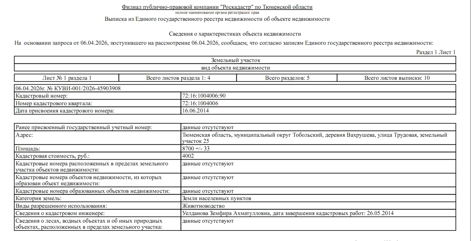 ЛОТ № 1: Российская Федерация, Тюменская область, Заводоуковский муниципальный округ, г. Заводоуковск, пер. Камчатский, з/у 11, площадь 1216 кв.м, кадастровый номер 72:08:0108001:3106. Вид разрешенного использования - для индивидуального жилищного строительства. Категория земель - земли населенных пунктов. Территориальная зона - Зона застройки индивидуальными жилыми домами и малоэтажными жилыми домами блокированной застройки.