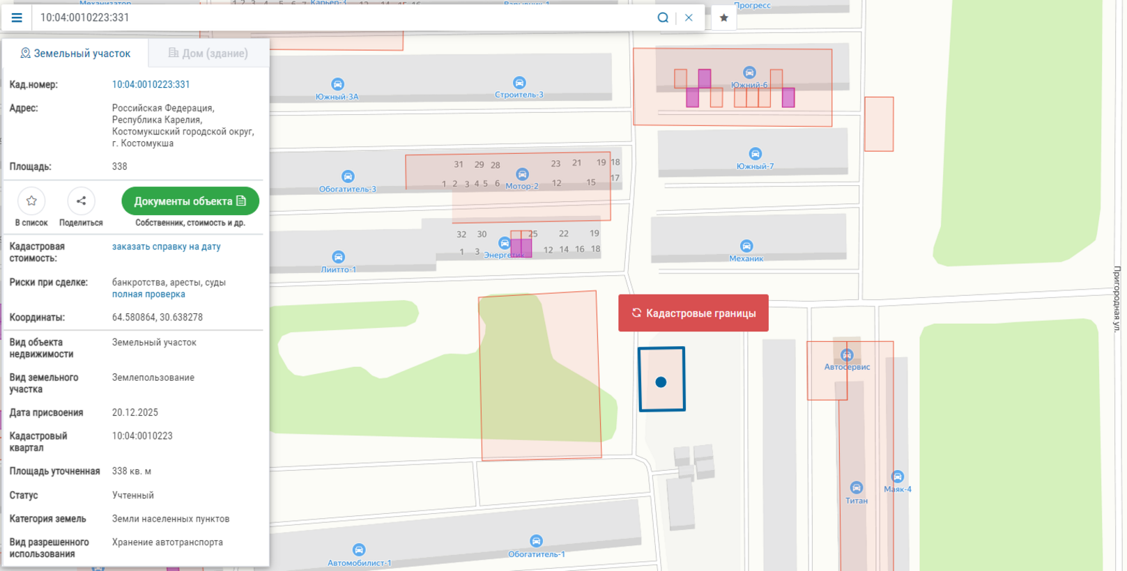 Право заключения договора аренды земельного участка из земель населенных пунктов, имеющего кадастровый номер 10:04:0010223:331, площадью 338 кв.м