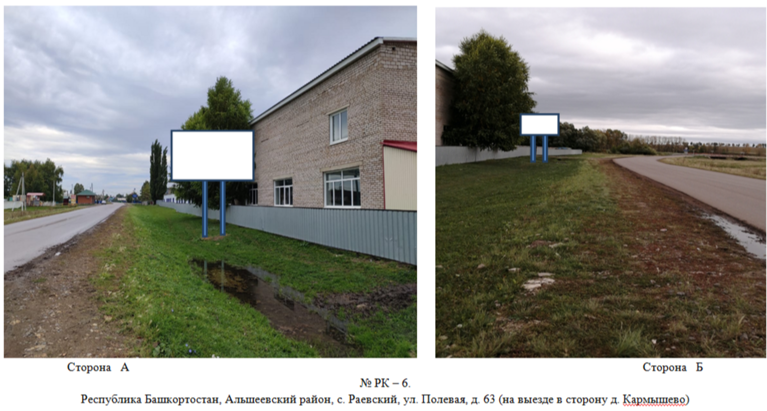 Право заключения договора на установку и эксплуатацию рекламных конструкций на земельном участке: Республика Башкортостан, Альшеевский район,с.Раевский, ул.Полевая 63, (на выезде в сторону д. Кармышево)