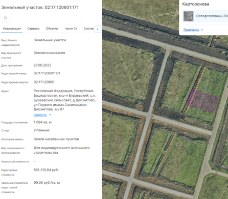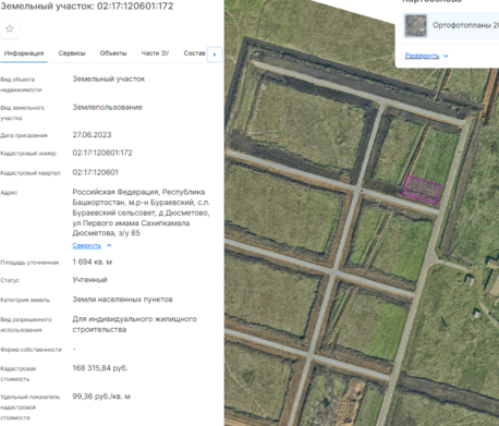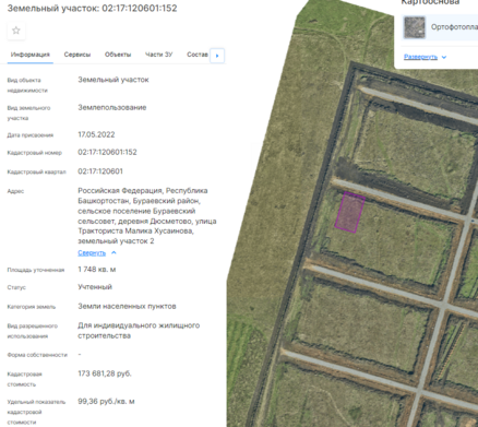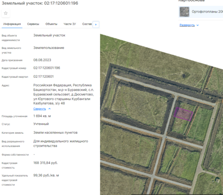 Земельный участок с кадастровым номером 02:11:020403:426, категория земель – земли населенных пунктов, площадью 1499 кв. м, местоположение: Российская Федерация, Республика Башкортостан, м.р-н Белорецкий, с.п. Инзерский сельсовет, с Инзер, ул Шоссейная, з/у 22, вид разрешенного использования – для индивидуального жилищного строительства.