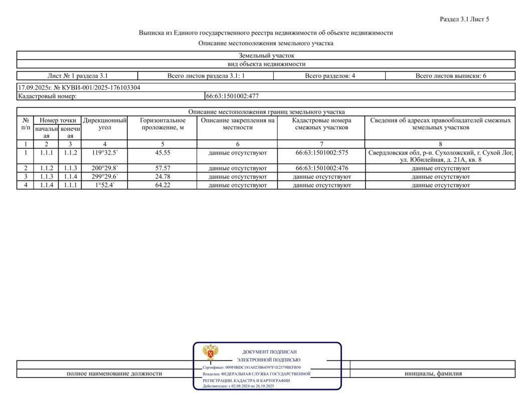 Лот № 1 – продажа земельного участка с кадастровым номером 66:63:0101010:1050, расположенного по адресу: Российская Федерация, Свердловская область, городской округ Сухой Лог, город Сухой Лог, улица Пролетарская, земельный участок № 64А (категория земель – земли населенных пунктов), с разрешенным использованием – для индивидуального жилищного строительства, общей площадью 1500,0 кв.м, территориальная зона – Ж1 – ЗОНА ЗАСТРОЙКИ ИНДИВИДУАЛЬНЫМИ ЖИЛЫМИ ДОМАМИ В ГОРОДСКИХ НАСЕЛЕННЫХ ПУНКТАХ