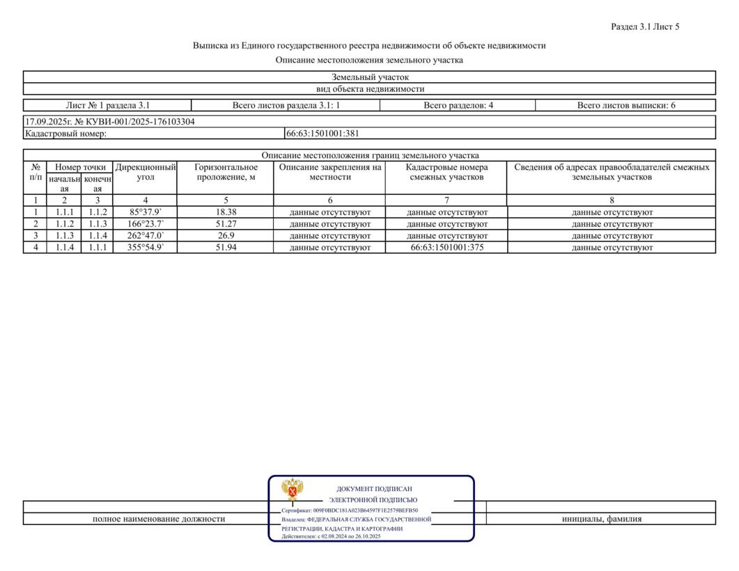 Лот № 5 – продажа земельного участка с кадастровым номером 66:63:1501001:381, расположенного по адресу: Свердловская область, р-н Сухоложский, д. Шата, ул. Гагарина, №40Б, общей площадью 1 163,0 кв.м., категория земель – земли населенных пунктов, разрешенное использование – для индивидуального жилищного строительства (строительство жилого дома), территориальная зона – Ж3 – зона застройки индивидуальными жилыми домами в сельских населенных пунктах, в границах, указанных в выписке из ЕГРН