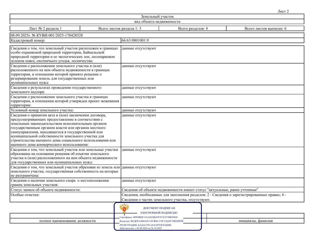 Лот № 2 – право заключения договора аренды земельного участка с кадастровым номером 66:63:1401003:974, расположенного по адресу: Свердловская область, муниципальный округ Сухой Лог, село Знаменское, улица Калинина, земельный участок 15В, общей площадью 2480,0 кв.м (категория земель – земли населенных пунктов), вид разрешенного использования – для индивидуального жилищного строительства